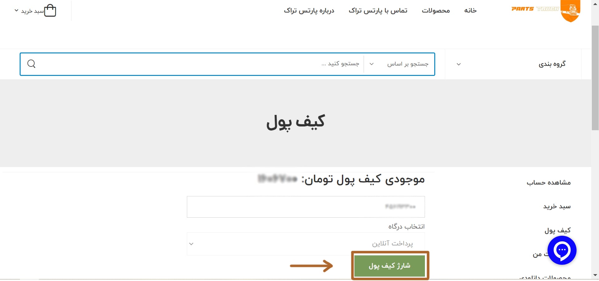 8.نحویه پرداخت را انتخاب فرمایید و دکمه "شارژ کیف پول" کلیک فرمایید