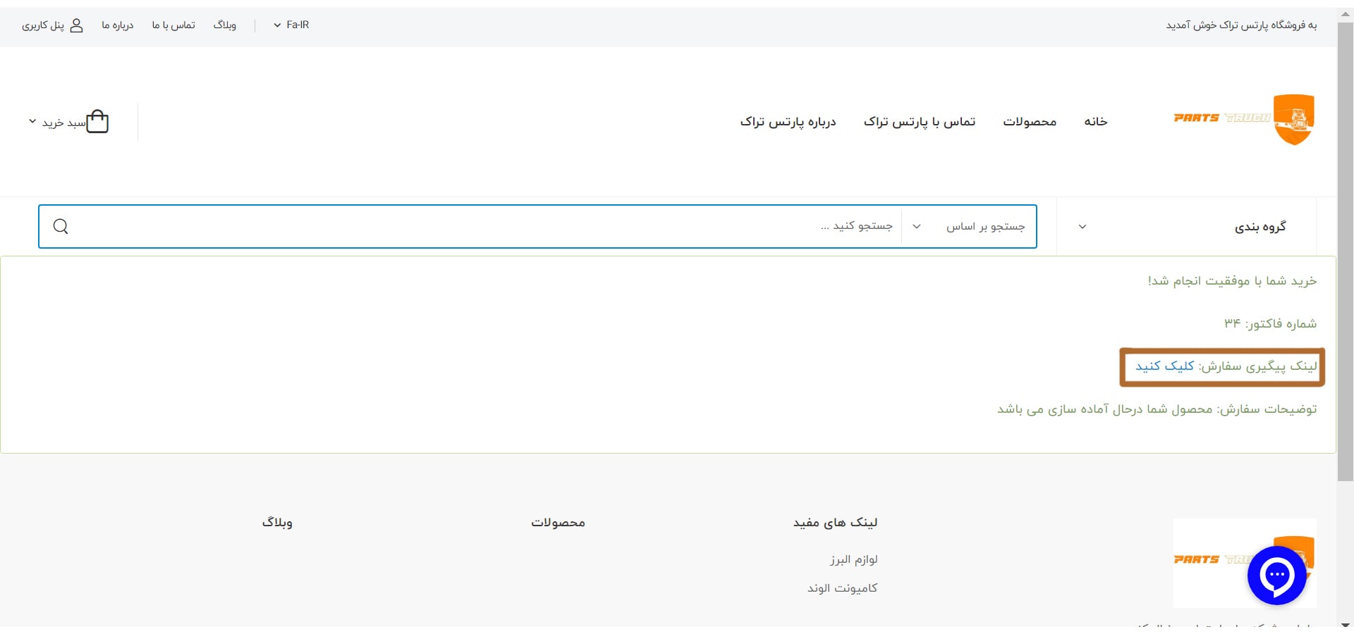 10.ثبت سفارش شما با موفقیت انجام شوده و برای پیگیری سفارش خود بر روی " لینک پیگیری سفارش" کلیک کیند