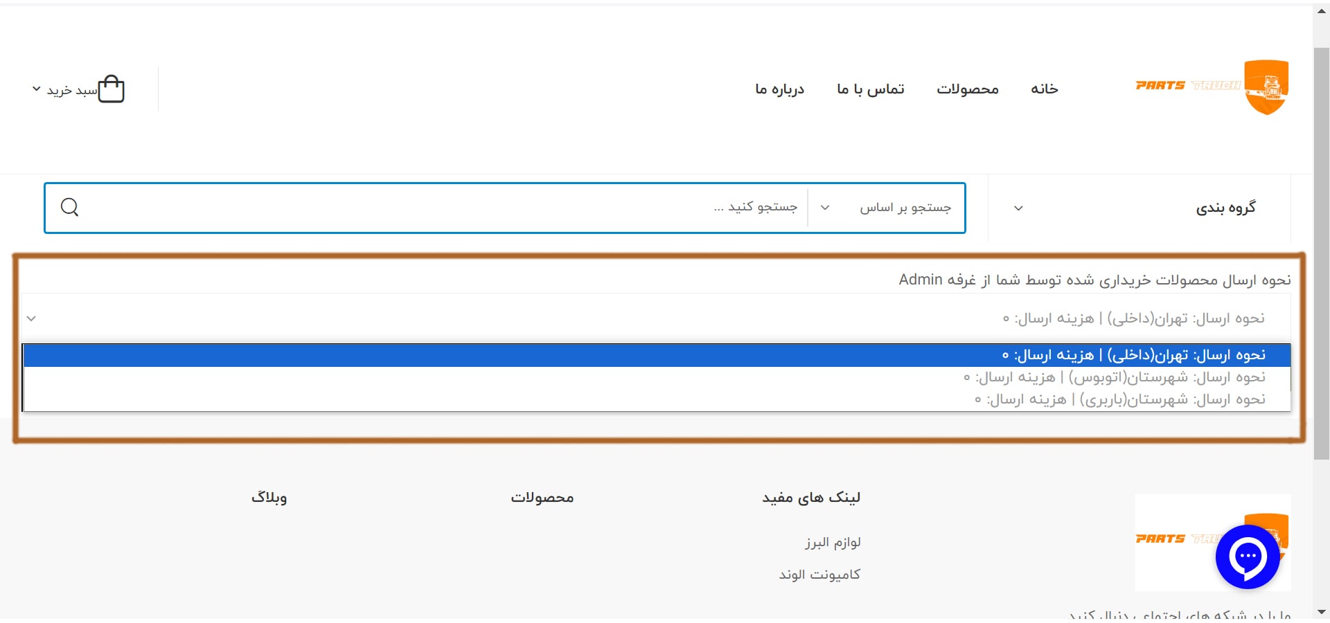 6.در این مرحله نحویه ارسال کالا خود را نسبت به حجم تعداد و شهر خود تأیین میکنید و روی دکمه "ادامه خرید" کلیک کنید